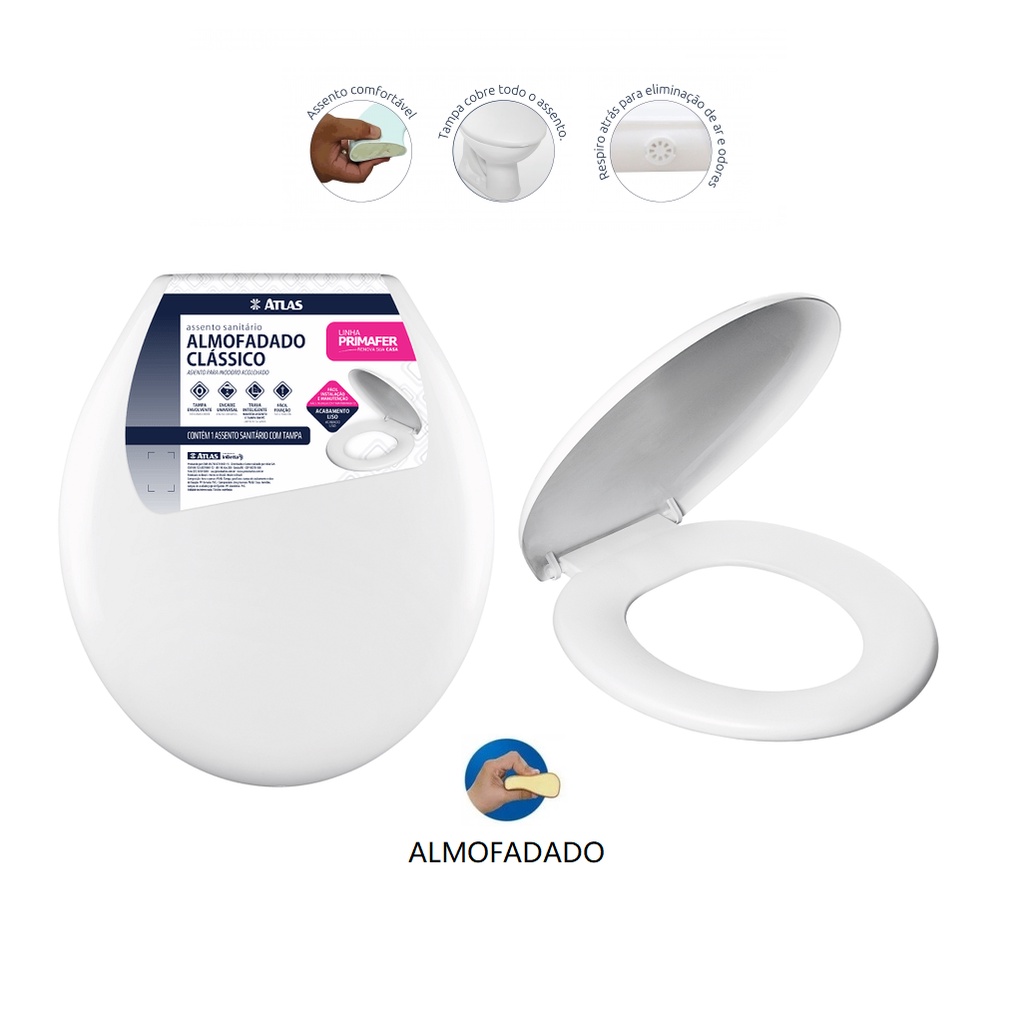 Assento Sanitário Almofadado Qualidade Oval Clássico Primafer Atlas Original Tampa Vaso P/ Deca Celite Icasa Universal