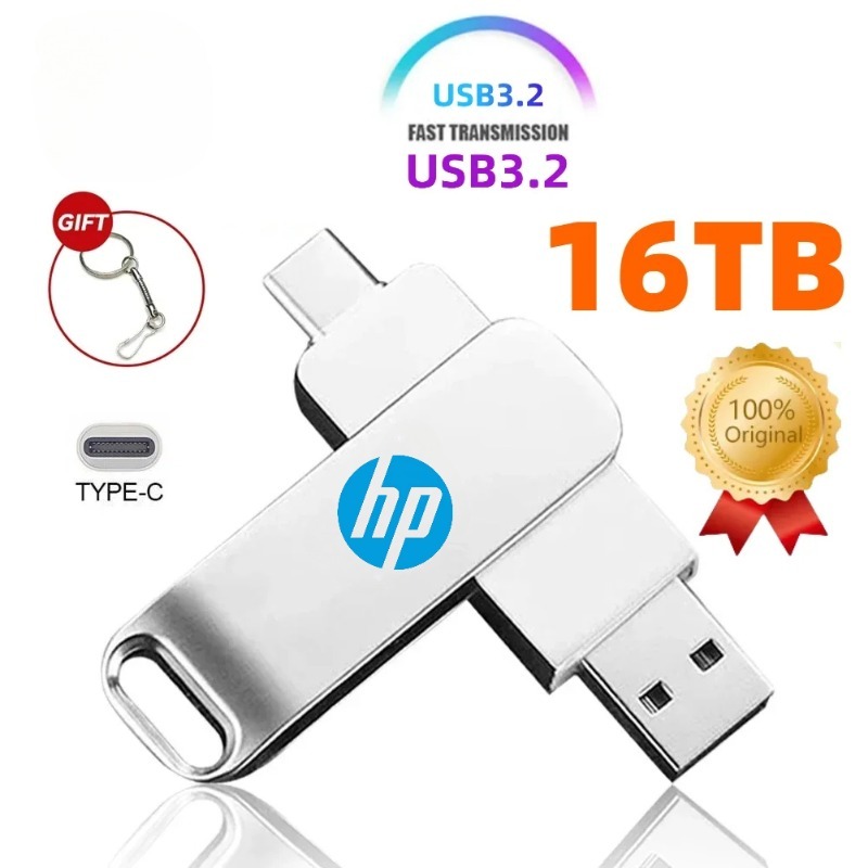 Pen Drive HP USB 3.0 2 Em 1 Flash Duplo Tipo C 1TB 2TB 4TB 8TB 16TB Disco De Memória Portátil U Mental De Alta Velocidade