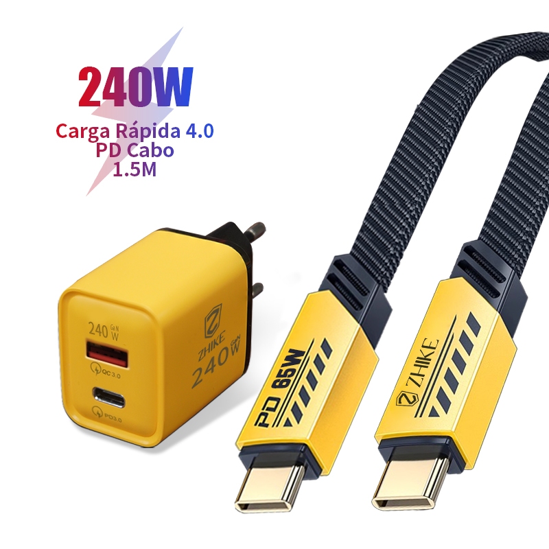 PD Cabo Carregador Carregamento Rápido Tipo C 65W iP 20W 1.5M Fio Trançado De Nylon Com Adaptador GaN 240 W