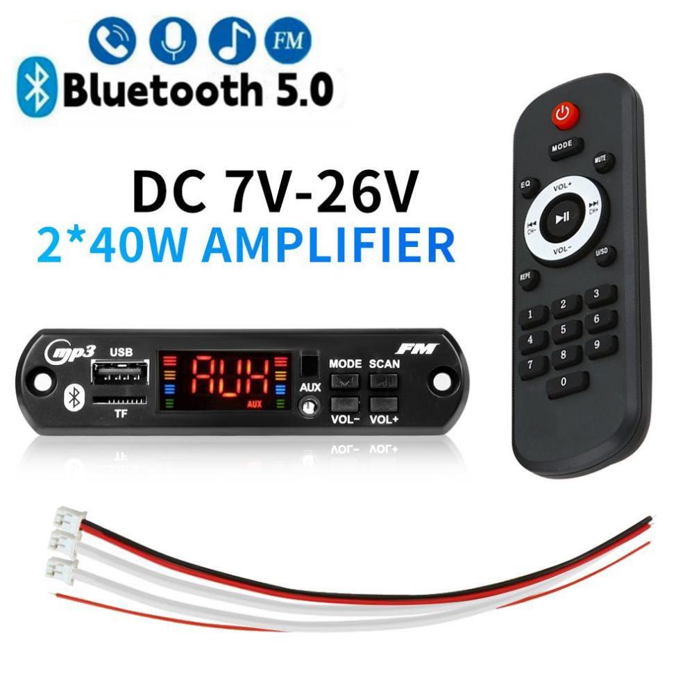 Amplificador De 80W Placa Decodificadora MP3 DIY DC 12V 40W Bluetooth 5.0 Reprodutor De Música Carro FM Módulo De Rádio TF USB Gravação De Chamadas Mãos-Livres