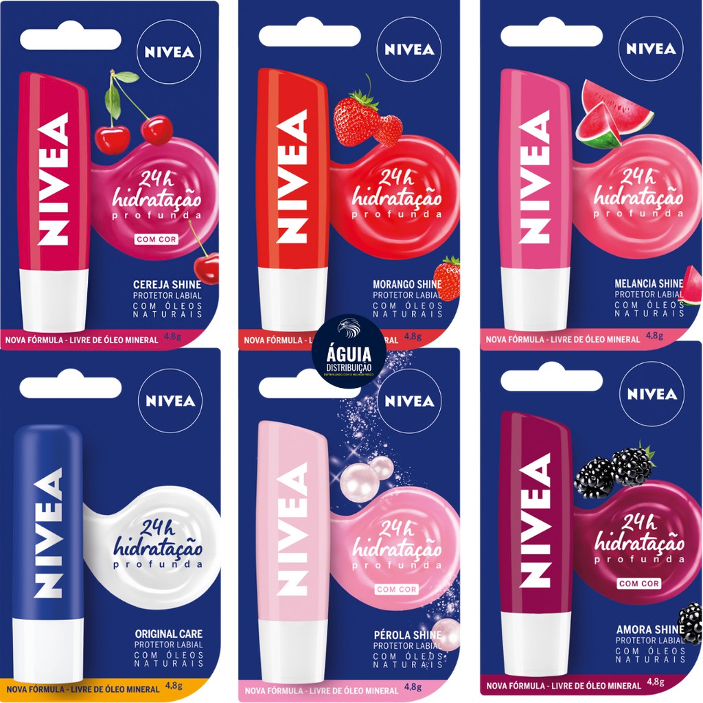 NIVEA Protetor Hidratante Labial: Amora, Morango, Melancia e sabores.