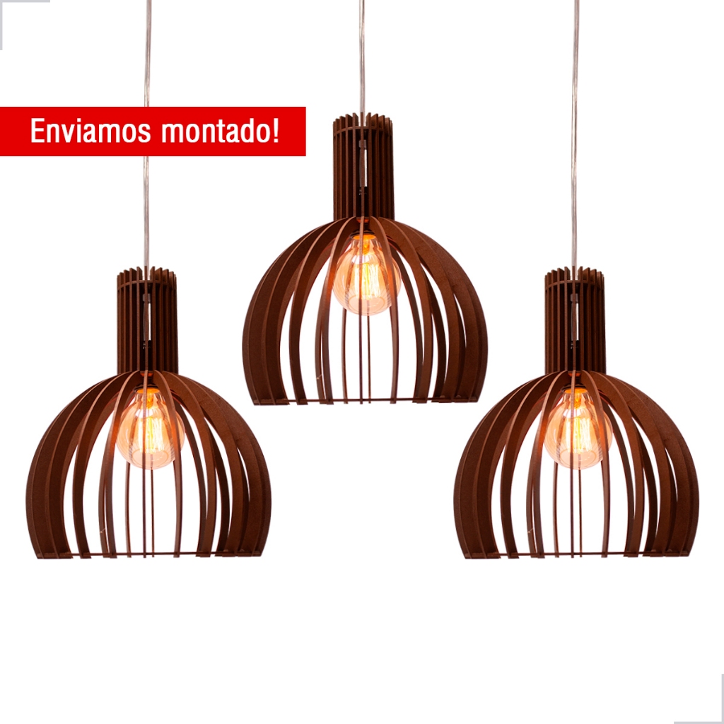 kit 3 Pendente Luminária de teto lustre para qualquer ambiente em MDF Enviamos MONTADO!