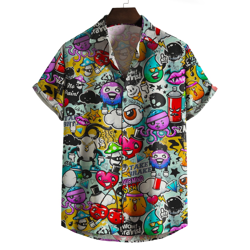 Camisa de botão desenho animado grafite colorida 3
