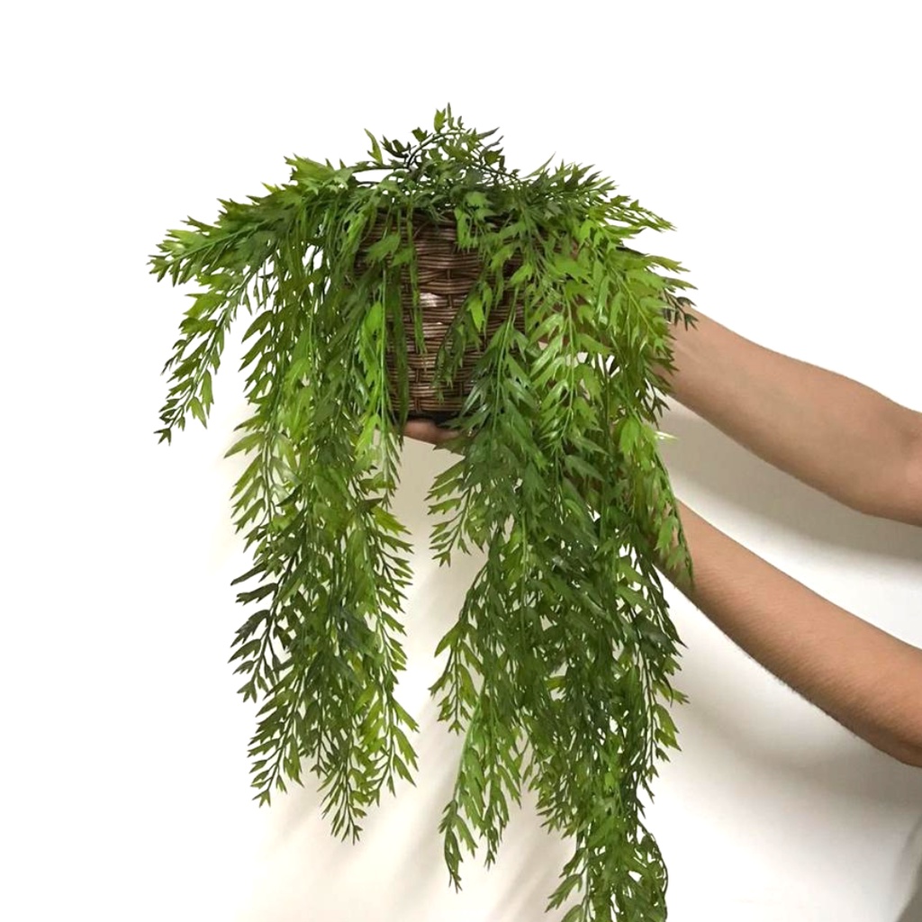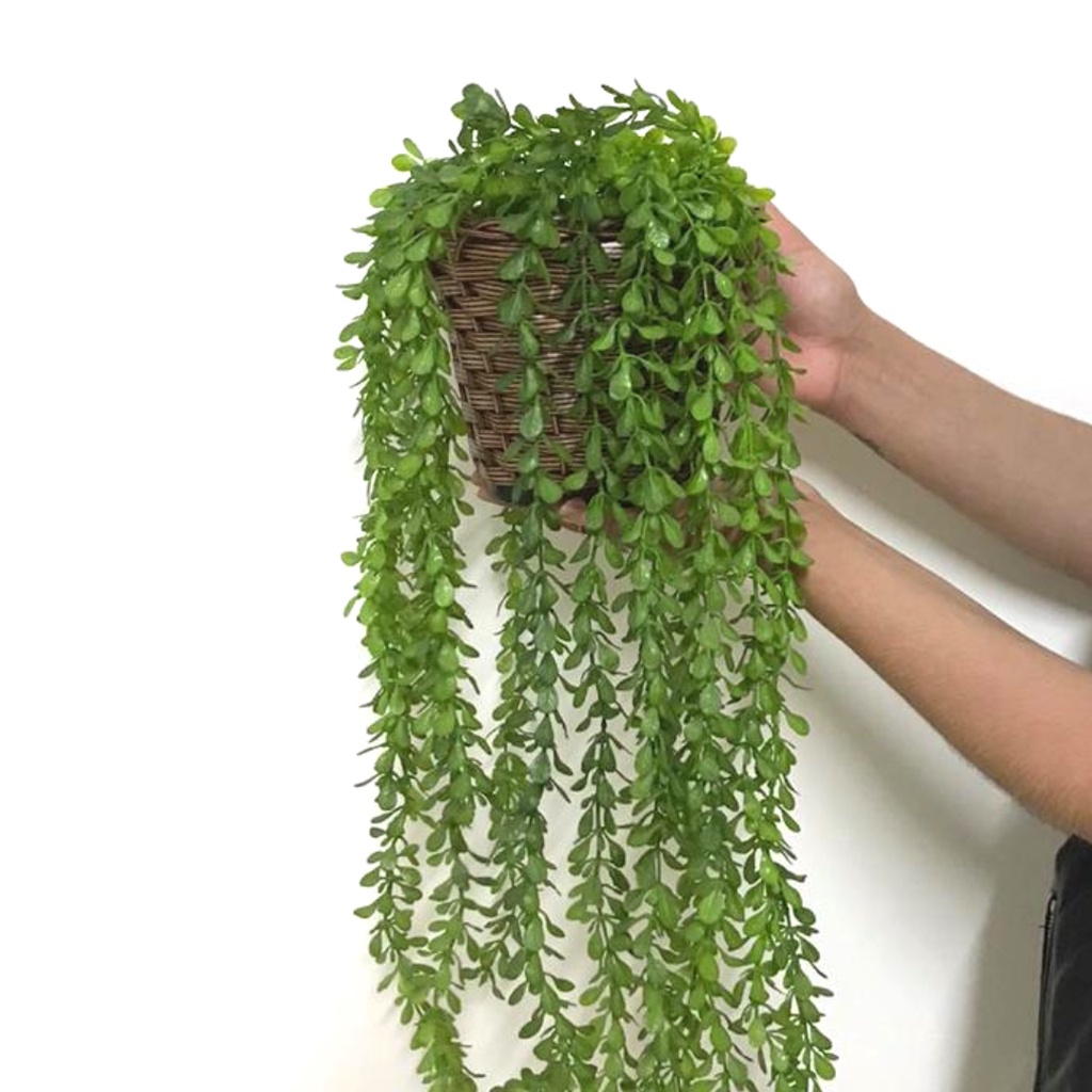 Arranjo Pendente Caída Folhagem Verde Artificial com Vaso de Fibra Artesanal Decoração para casa, festa, Escritorio, Natal