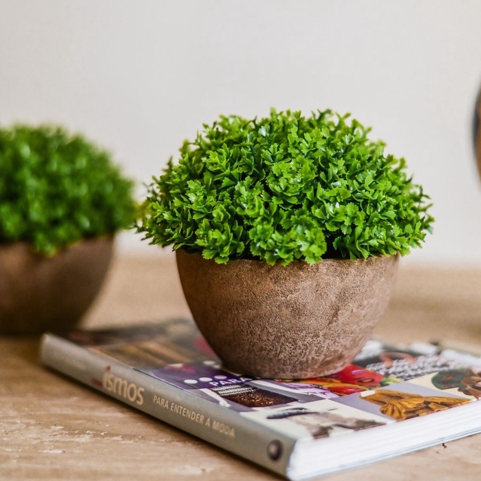 Kit 2 Vaso Buchinho Topiaria Planta Artificial Folhagem Vasinho Arranjo Plantinha Planta Decorativo