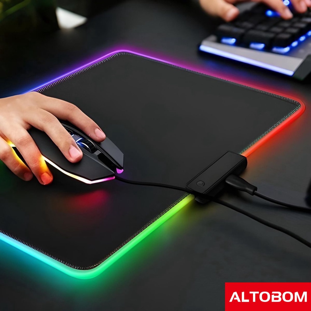 Mouse Pad Gamer Profissional Iluminado RGB LED Impermeavel Base Borracha 35x25 Cm Preto