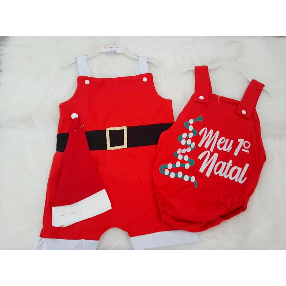 Body Meu Primeiro Natal e Macacão com Gorro 3 a 6 meses e 9 a 12 meses