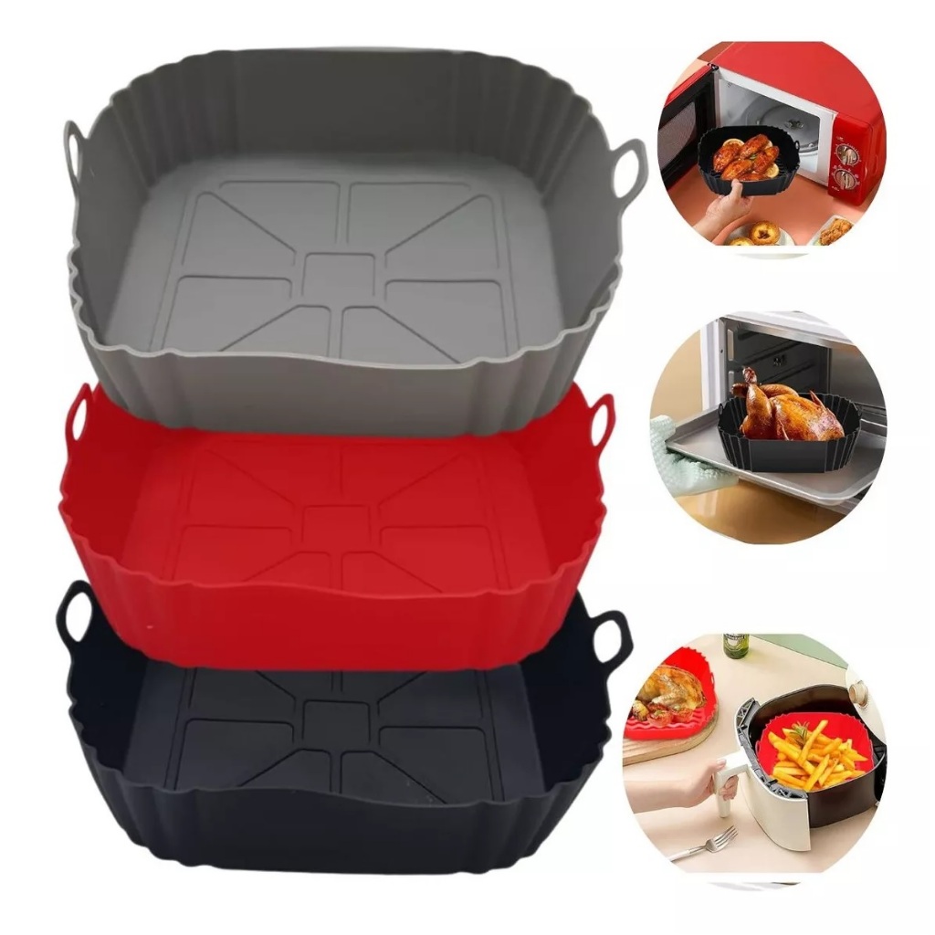 Forma Silicone Grande Air Fryer 21cm Forro Quadrado Antiaderente Bandeja Cesto Protetor Air Fry Air Frayer Fritadeira Natal