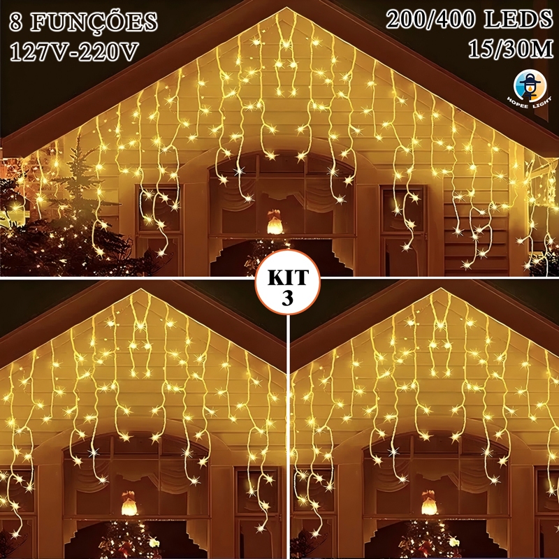 15M/30M Cascata Natal com 400 Luzes【Frio/Quente/Multicolorido】3 Opções 8 Funções Pode ser em série