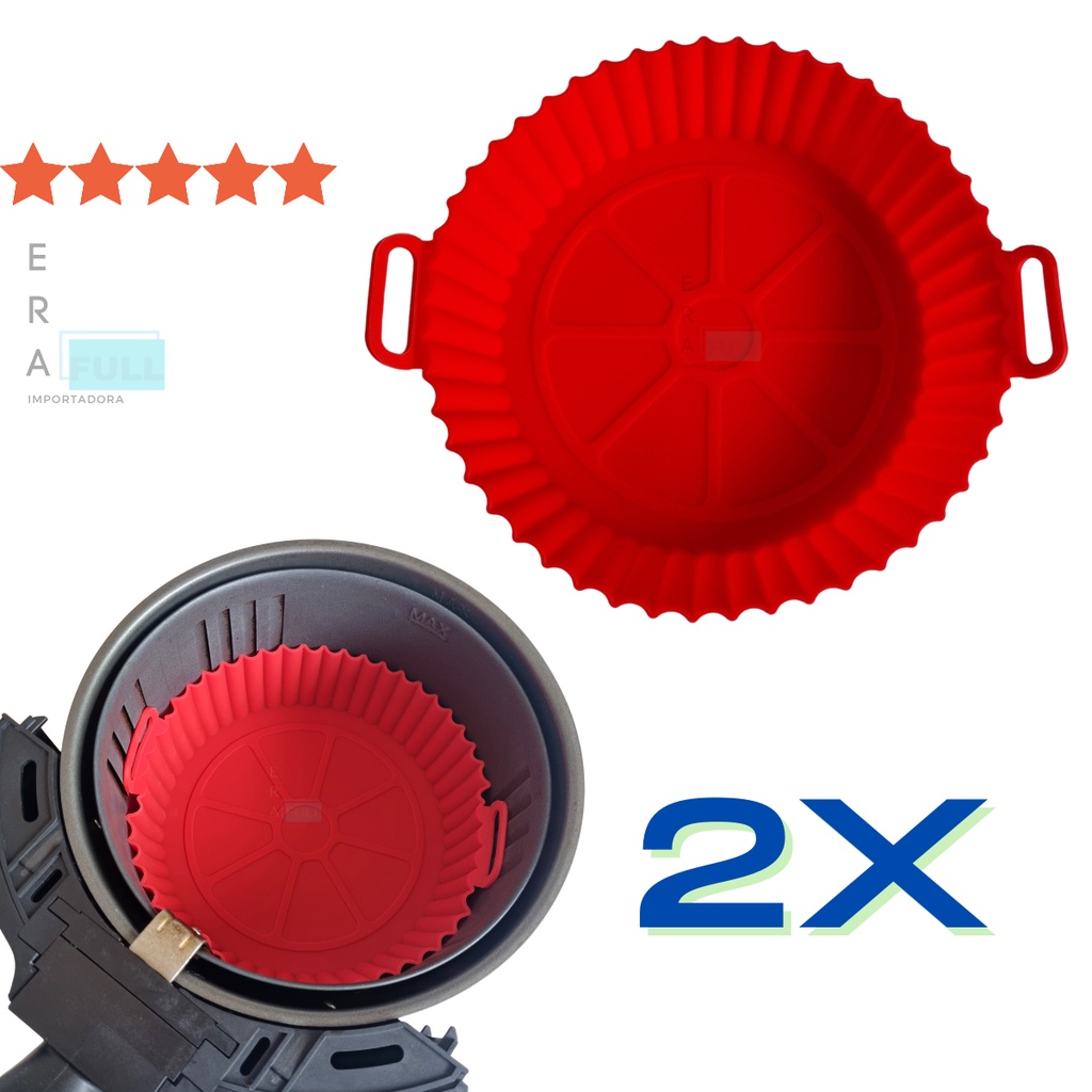 Kit 2 Cestos de AirFryer 20cm Protetor Silicone Fritadeira Forma Antiaderente Bandeja Reutilizável Air Fry Fryer Cozinha Natal