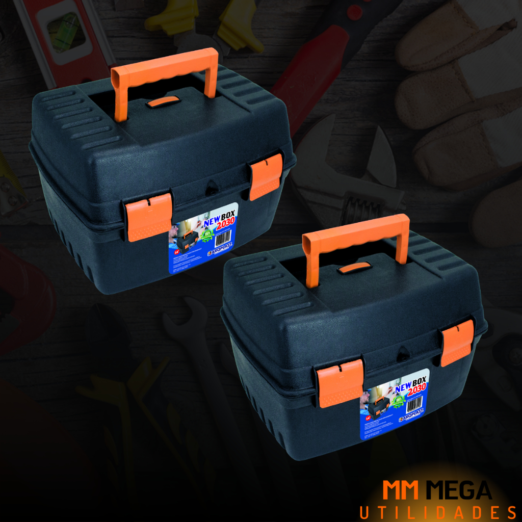 Kit 2 Maletas Caixa de Ferramentas New Box 2030 / Granite 13 Pro Grande Reforçada Organizadora Com Divisória Resistente Cabe Serra Mármore