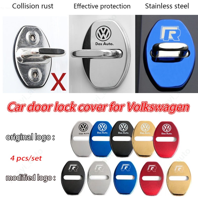 4pcs/set Car Door Lock Cover Decoração Protetora Da Porta Do Carro Aço Inoxidável Para Volkswagen Vw Gol T-cross Nivus Saveiro Taos Polo Amarok Virtus Tiguan Passat Arteon Golf Vento Acessórios