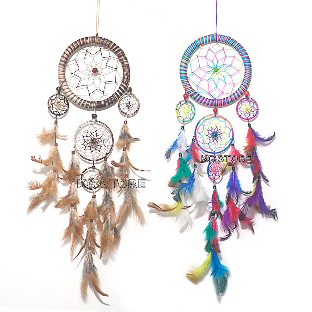 Filtro Dos Sonhos Marrom Natural Colorido reggae tie dye penas leve 3 aros apanhador decorativo bonito 40cm 43cm