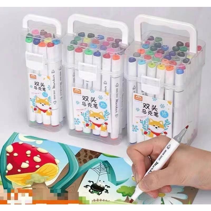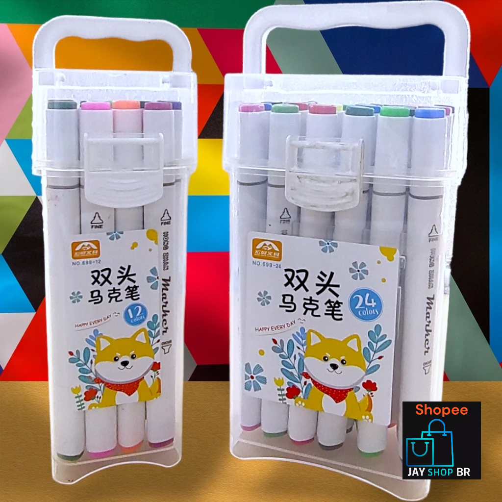 KIT 12/24 Cores Aquarela Conjunto De Canetas Marcadores De Arte Com Ponta Dupla Presente(Presente de Natal)