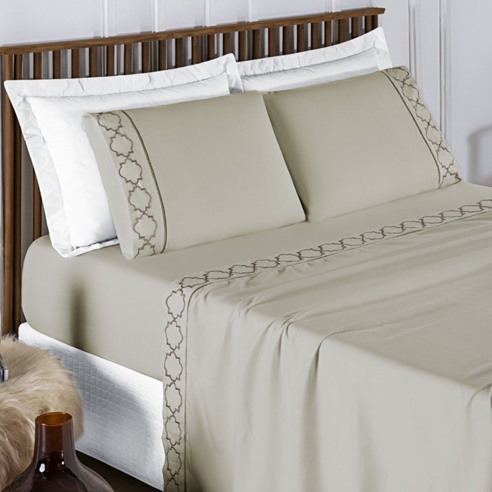 Jogo de Lençol King\Queen\Casal 4 Peças Percal 400 Fios Ponto Palito e Bordados Infinity Luxuoso