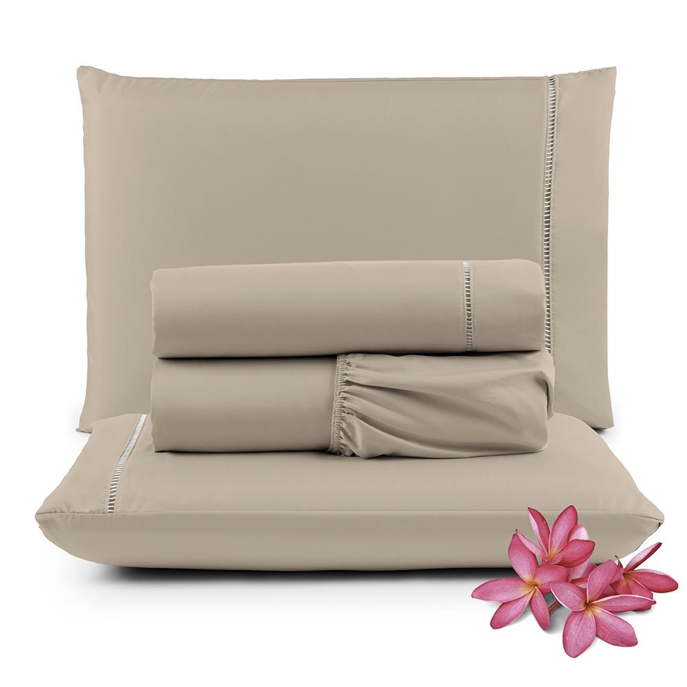 Jogo de Lençol Primor King 4 Peças Percal 400 Fios Ponto Palito - Avelã - 100% Poliéster