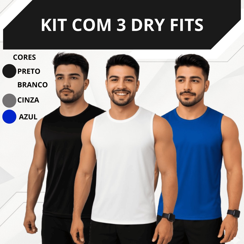 Kit 3 Regatas Masculinas Dry Fit Academia Treino Fitness Secagem Rápida