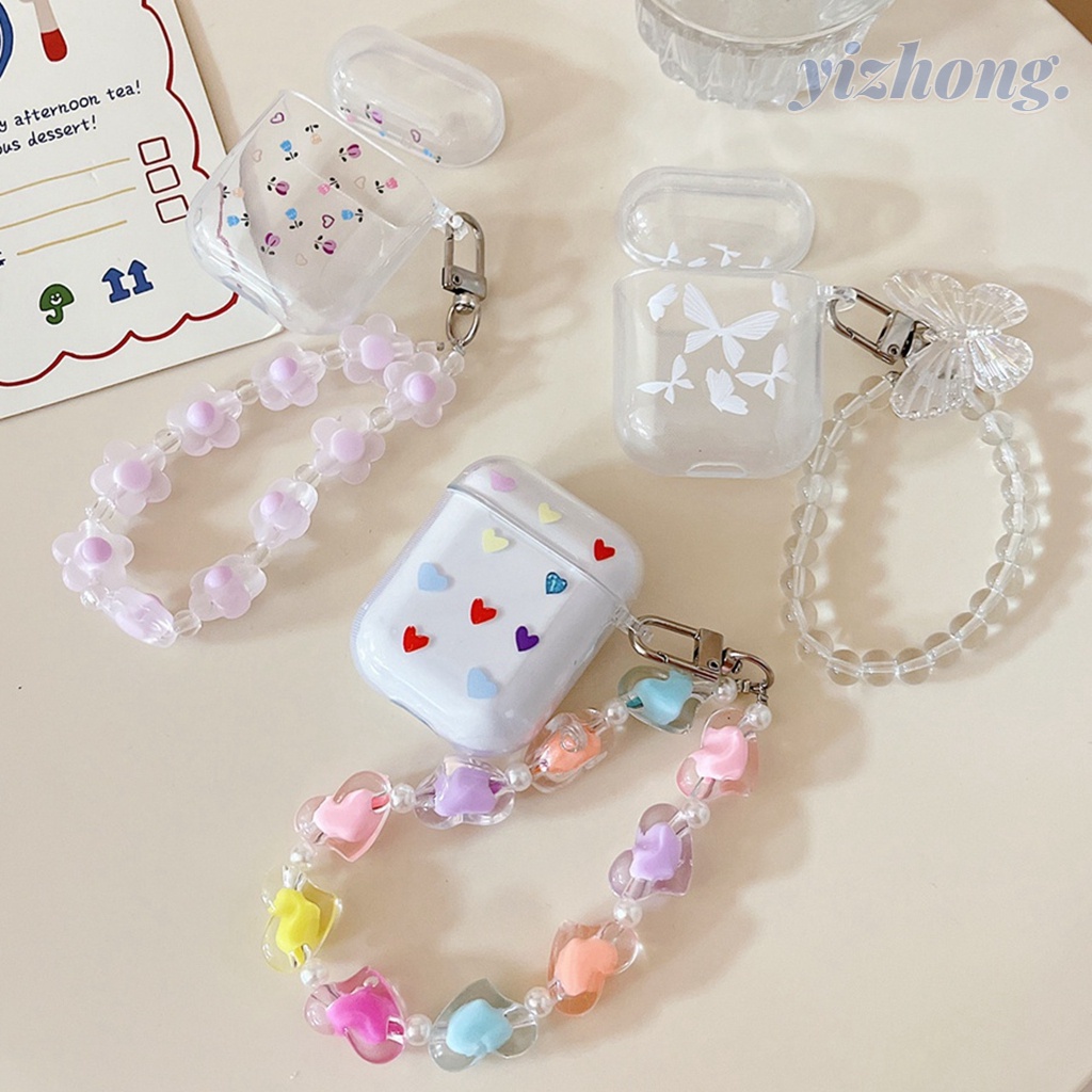 i12 Estojo Para Fone De Ouvido Borboleta Colorida Tulipas Do Coração Amor Flores Impressão Transparente TPU À Prova De Choque Suave Com Entradas Em Corrente 12 Capa Protetora Sem Fio