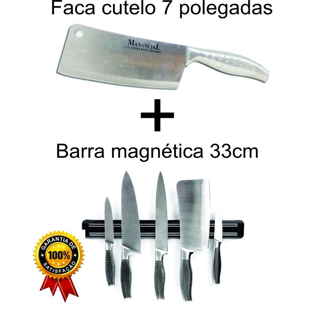 Kit Faca Cutelo 7 Polegadas + Barra Magnética 33cm
