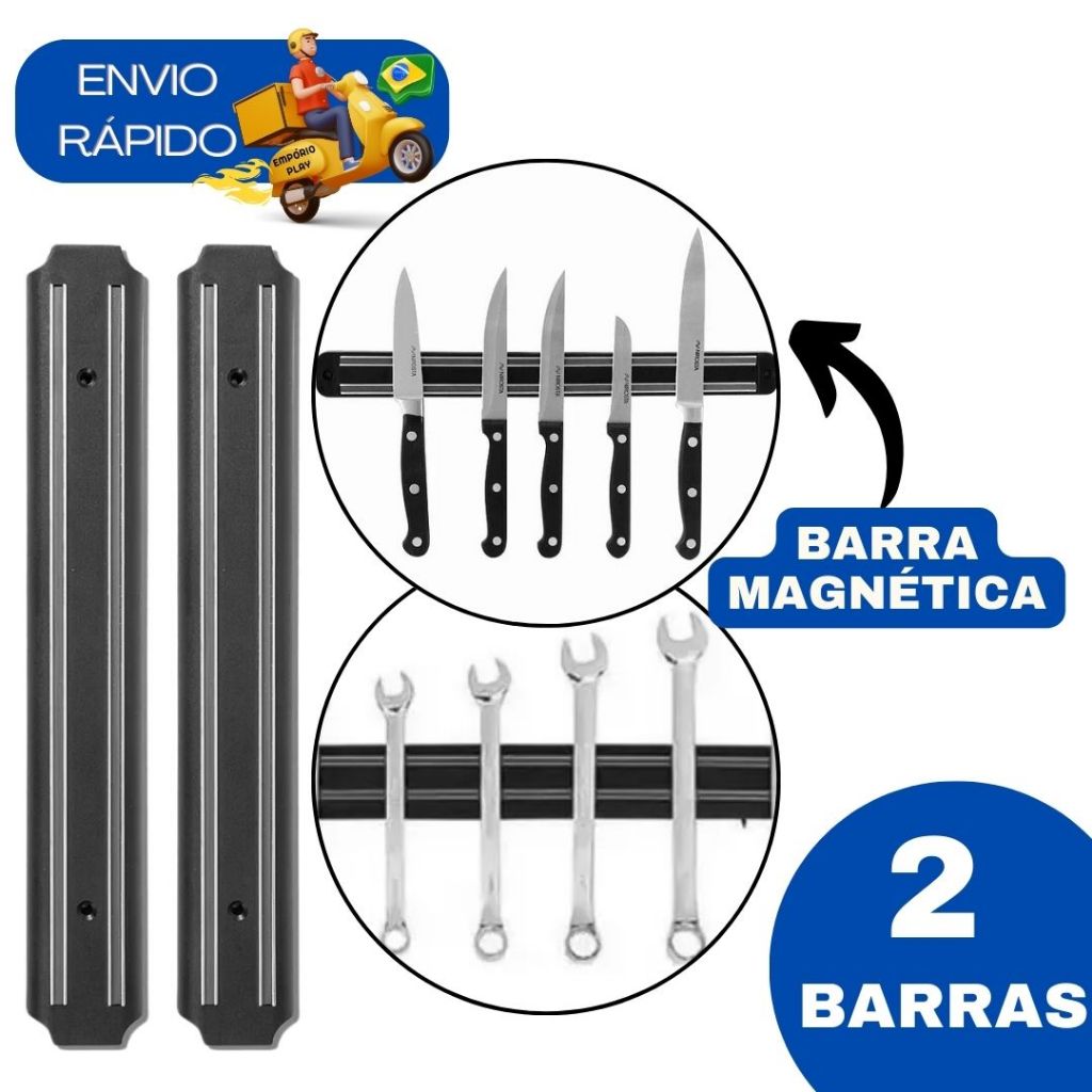 Kit Conjunto 2 Barras Imã Magnética Suporte Para Facas E Ferramentas 33cm