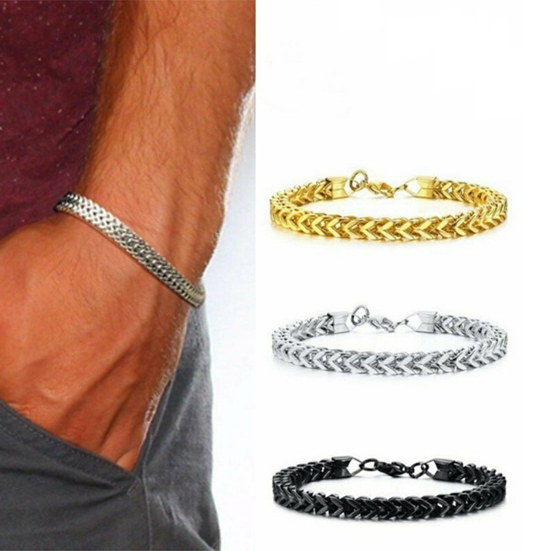 Pulseira Masculina De Aço Inoxidável / Titânio Com Fecho De Corrente