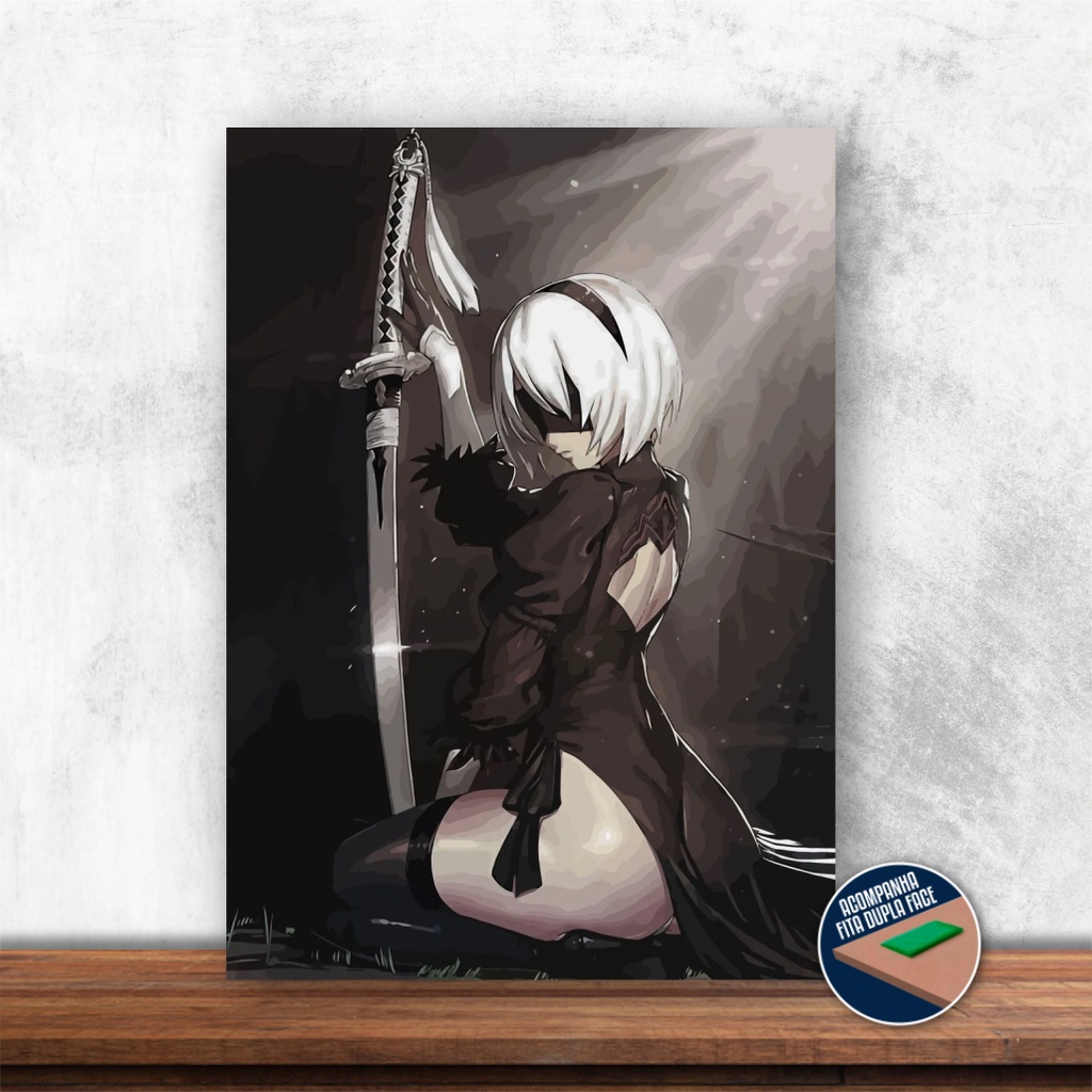 QUADRO DECORATIVO 2B BLACK & WHITE EM MDF | 28X20CM | Casa, sala, quarto, GAMES, NIER AUTOMATA | PROMOÇÃO