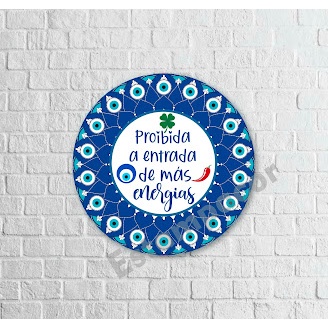 Placa Decorativa Quadro Mandala em MDF Olho Grego Proibida a Entrada de Más Energias Proteção Espessura 3mm