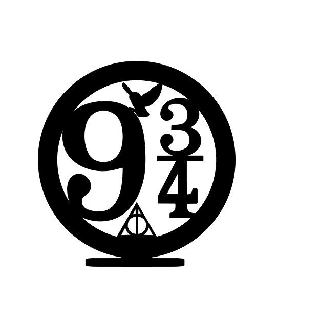 Placa Totem Decorativa Plataforma 9 3/4 HP Harry Potter 12x12cm em MDF 3mm Base 6mm