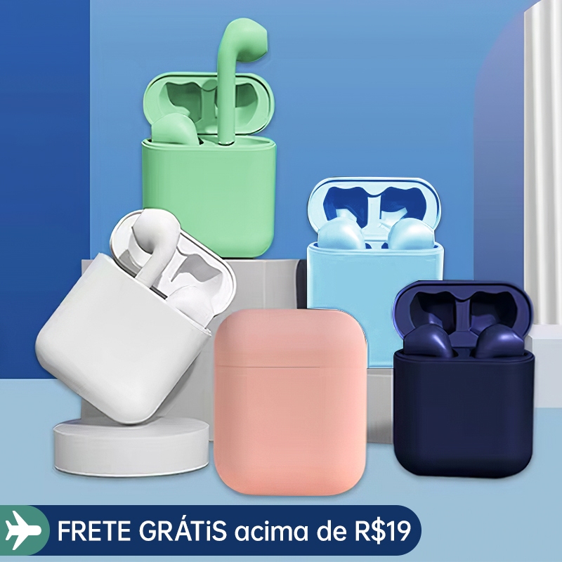 Fone de Ouvido Sem Fio Bluetooth i12 Tws 5.0 Macaron Intra-Auricular Inpods Airpods