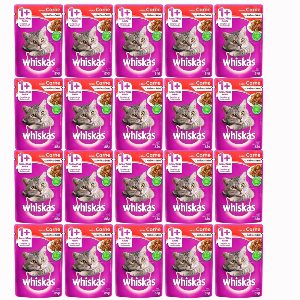 Sache gato whiskas carne ao molho 85g kit com 20 unidades alimento umido para gatos