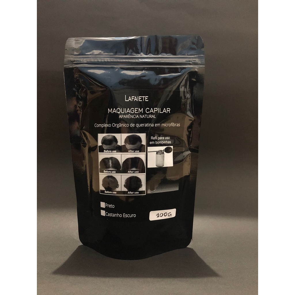 Maquiagem Capilar Fibra Queratina Pó Calvície Refil 100g aplicação cabelo barba profissional imediato salão alopecia