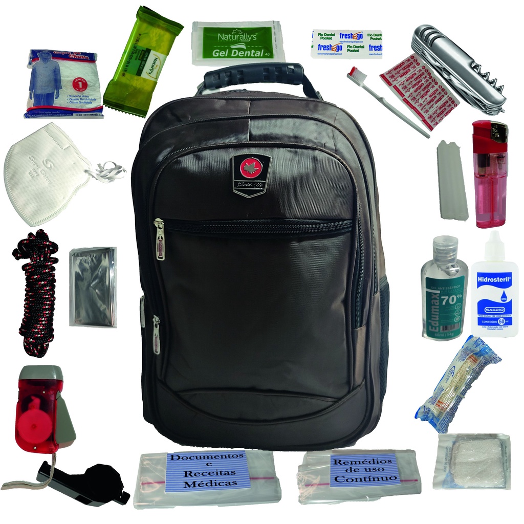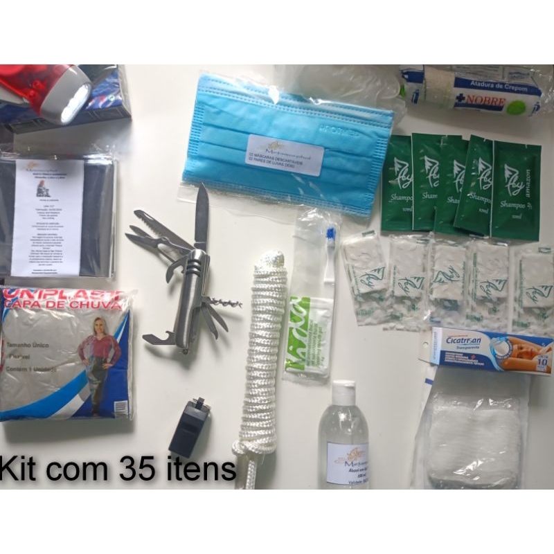Kit de equipamentos e primeiros socorros BÁSICO para mochila de emergência com 35 itens. Pronta Entrega!