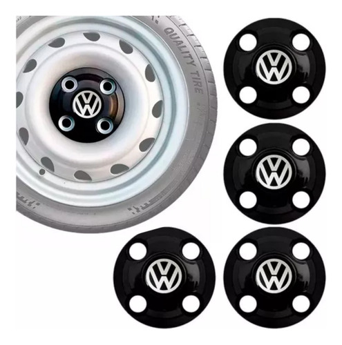 Jogo Calota Centro Roda Ferro VW Eurovan Aro 13 14 15 4 Furos Preta Brilhante