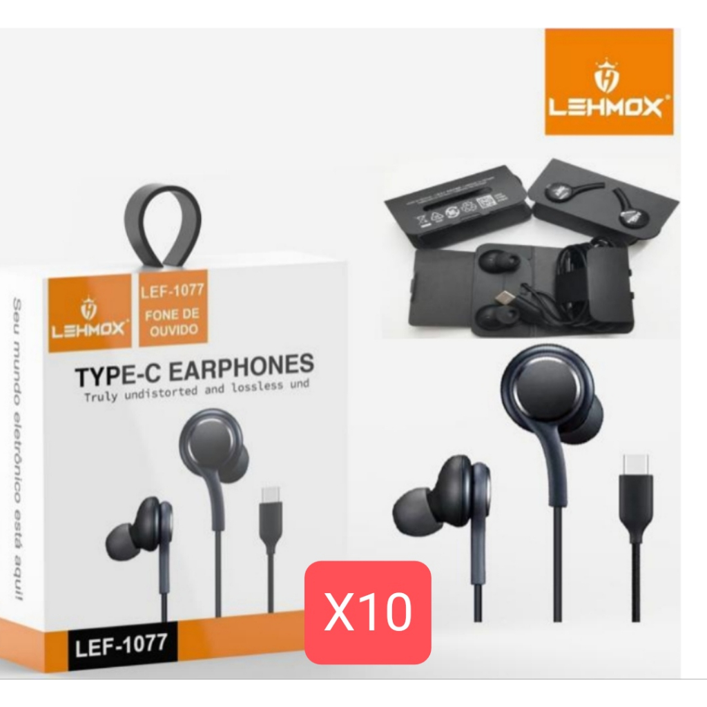 kit 10 Fone de Ouvido Tipo C com Microfone LEF-1077 - Lehmox/fn-a61 agold