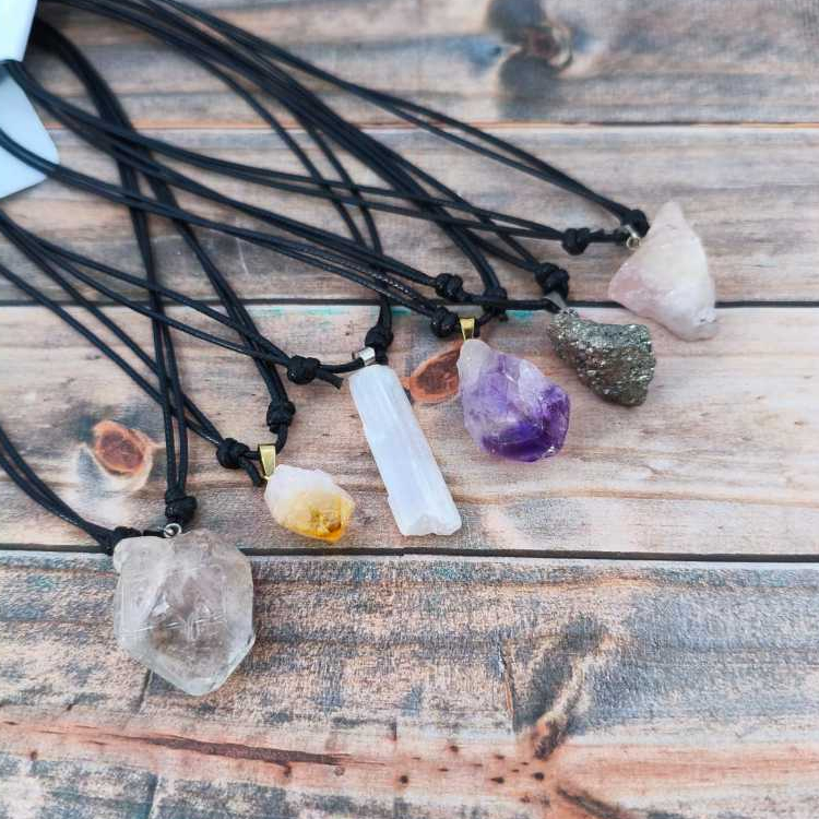 Colar Pedra Natural Bruta Energia e Proteção – Quartzo, Citrino, Ametista, Selenita, Pirita e Mais