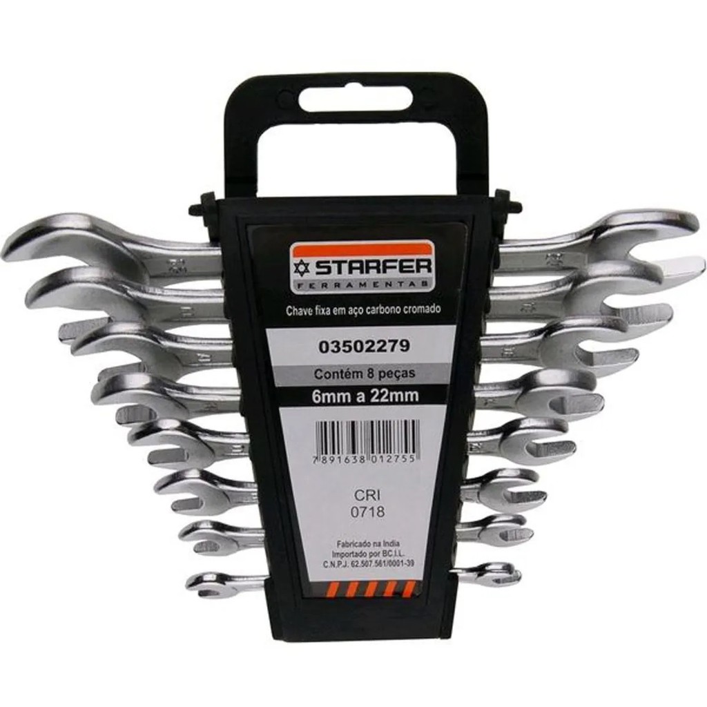 Kit Jogo Chave Boca Fixa Aço Starfer 8 Peças 6 A 22mm