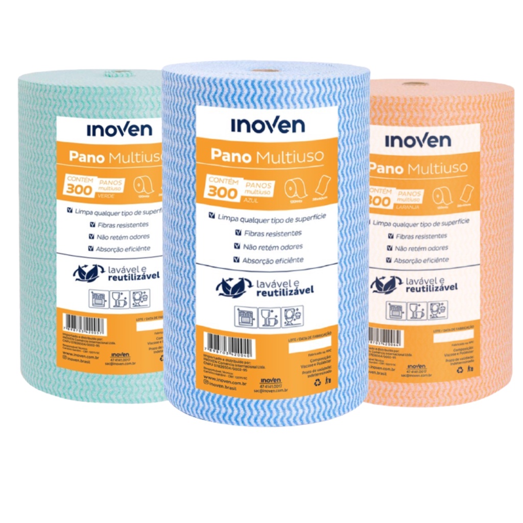 Pano Multiuso Inoven Tipo Perfex 20x40cm Rolo 240m Limpeza - Promoção