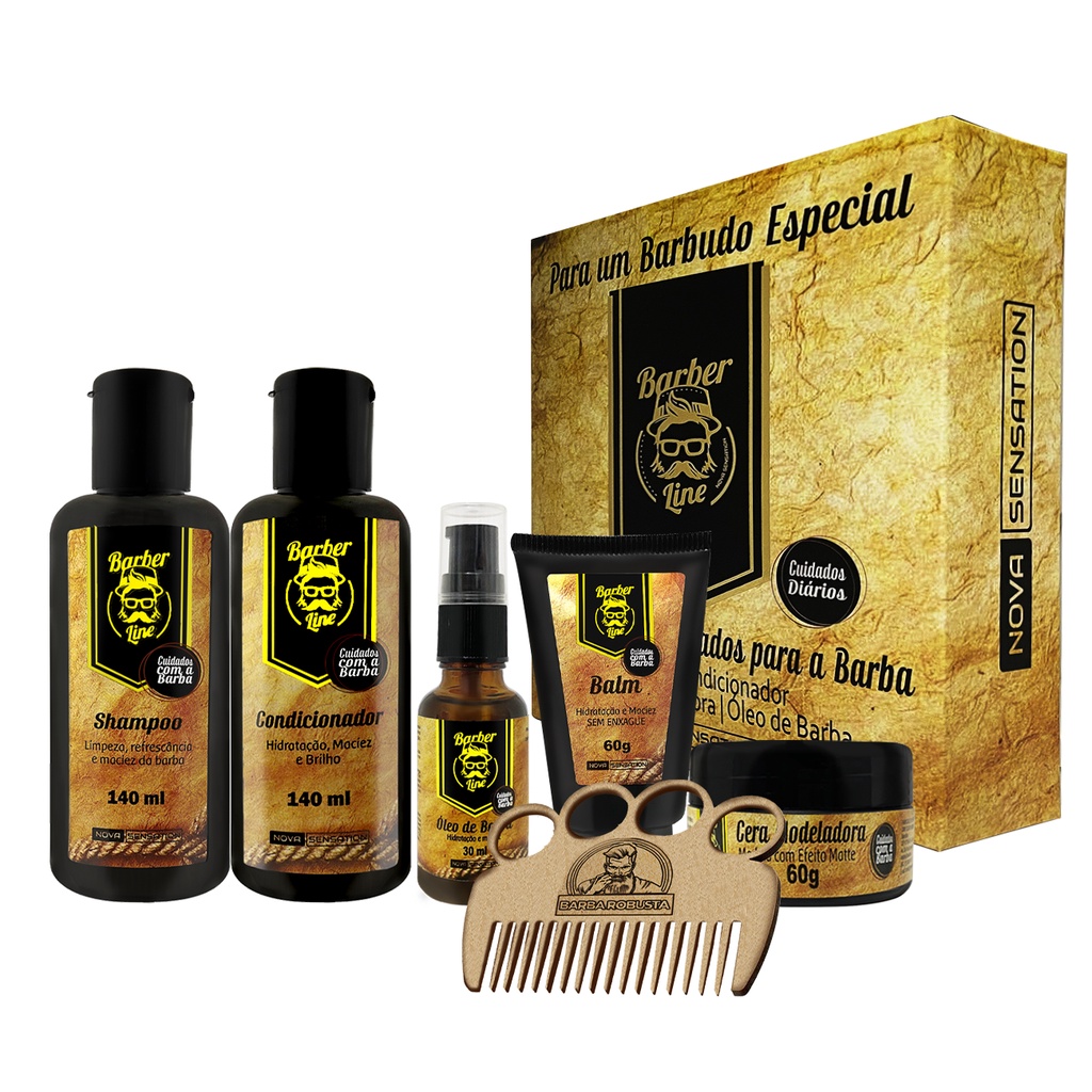 4. Produtos para Barba Kit com Balm + Shampoo + Óleo para Barba Evolution Barber