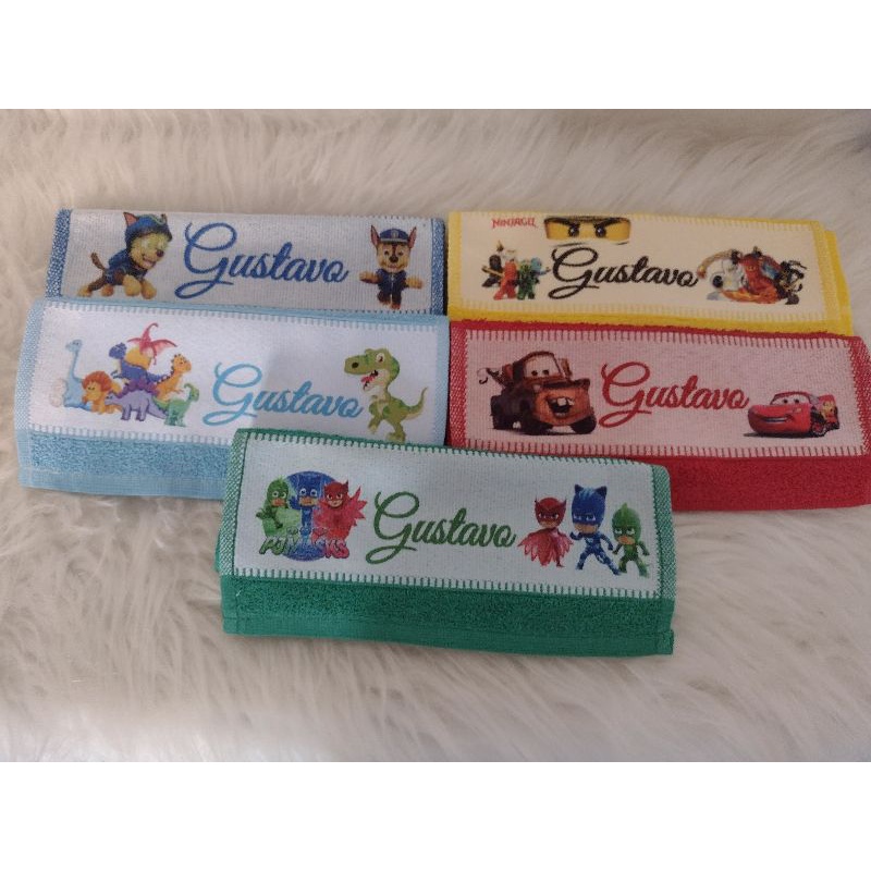 Kit 5 toalha de boca Toalhinha personalizada com nome e tema bebê infantil escolar lancheira