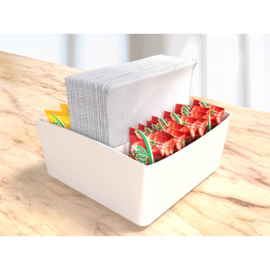 Kit 3 Porta Guardanapo Mesa Sachê C/ Divisórias Restaurante Bar Lanchonete Branco