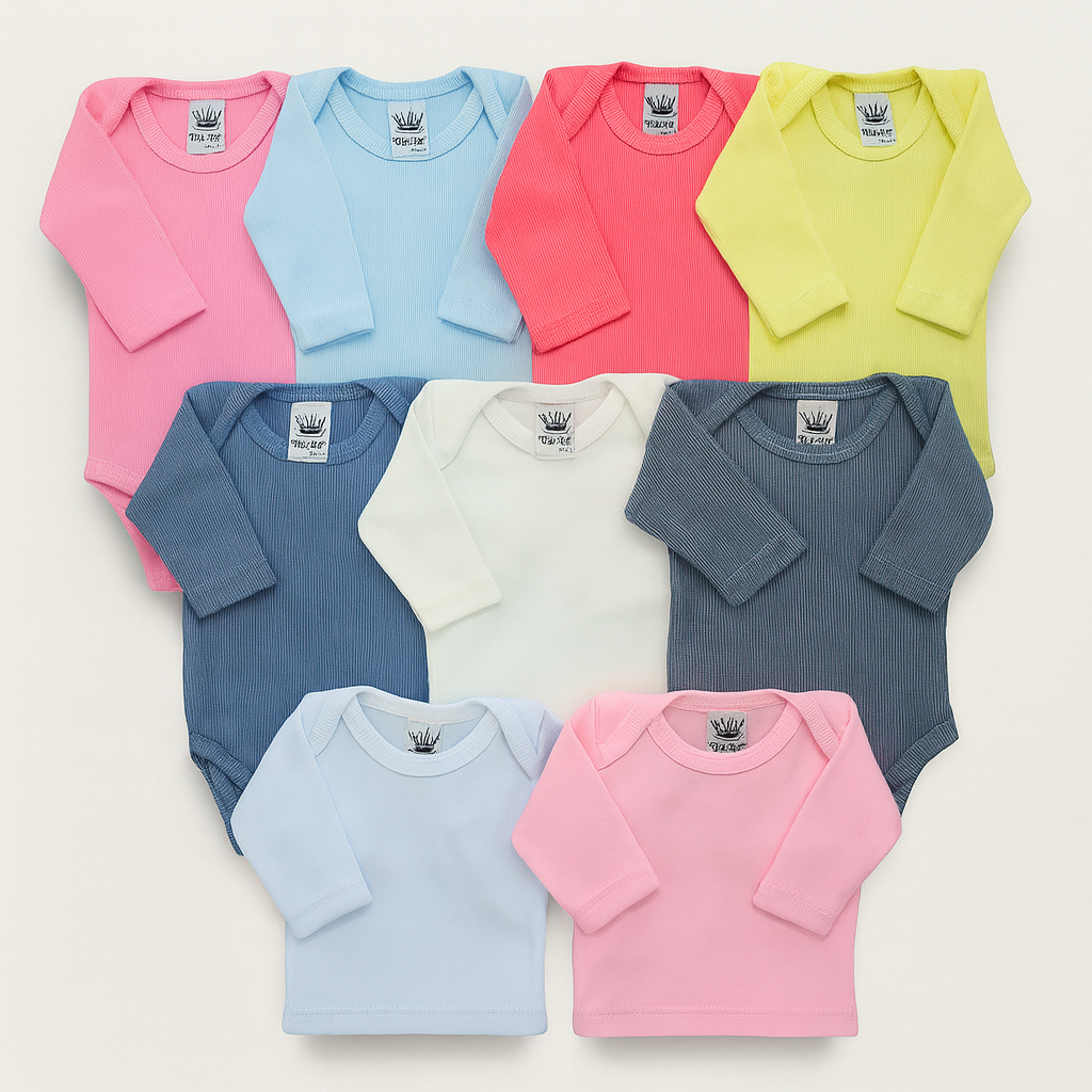 Kit com 5 Body De Bebê Tecido Canelado ou suedine P M G Alyaht - Enxoval do Bebê