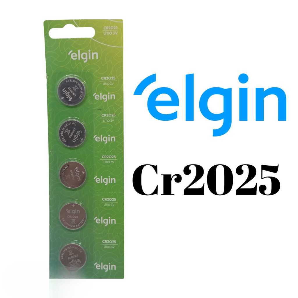 05 Baterias Pilha CR2025 3V Elgin Moeda 1 Cartela Original