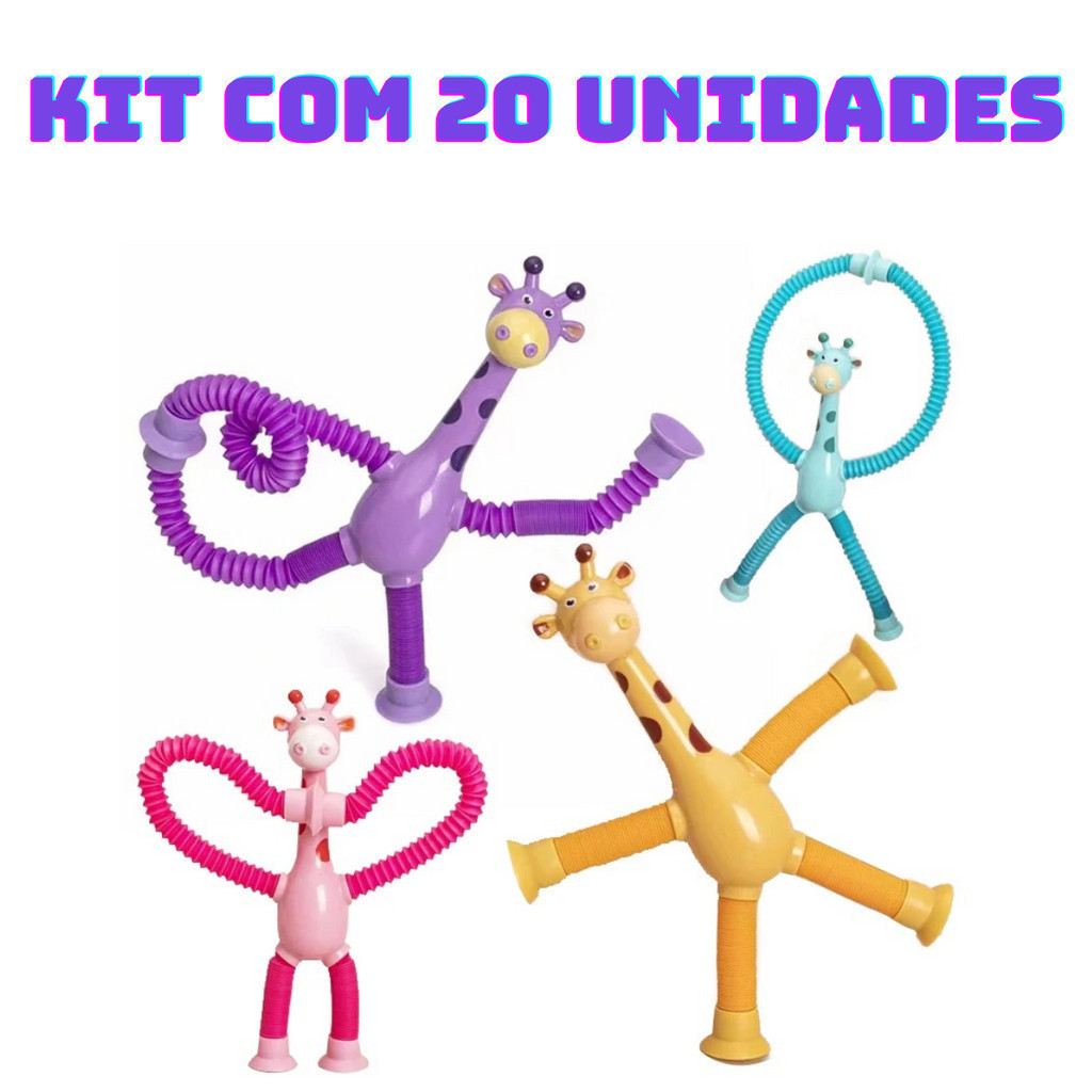 Kit 4 Girafas Sucção Pop Tube Luz Led com Ventosa Estica Brinquedo Infantil