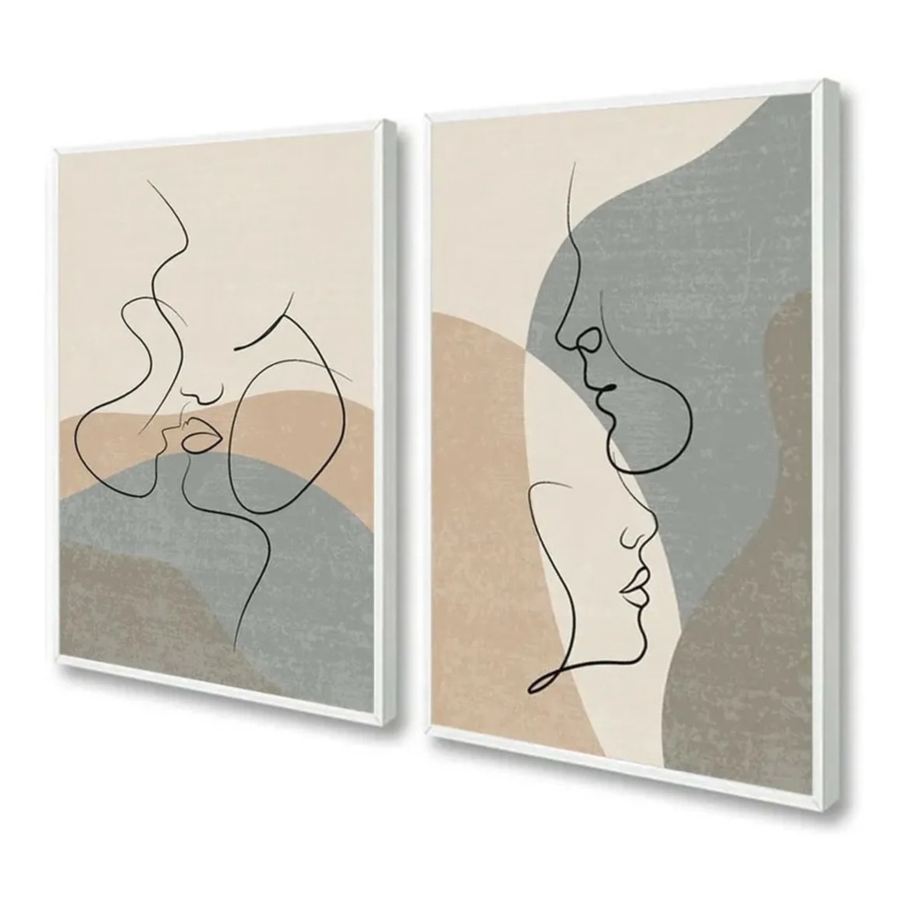 Kit 2 Quadros Decorativos Abstrato Casal Moderno Quarto De Casal Sala Corredor Casa Com Moldura e Vidro
