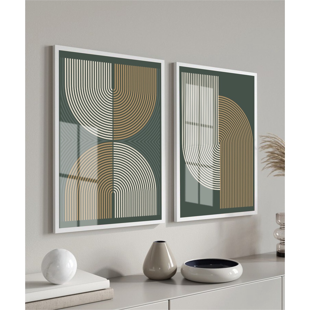 Kit 2 Quadros Decorativos Geométrico Moderno Formas Para Quarto Sala Casa Com Moldura e Vidro