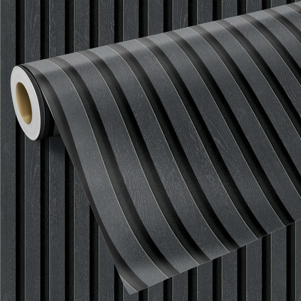 Papel de parede Adesivo Auto Colante Vinílico Decoração Ripado Madeira Preto Efeito Natural Ripas Vertical Lavável 3D - Pro Decor