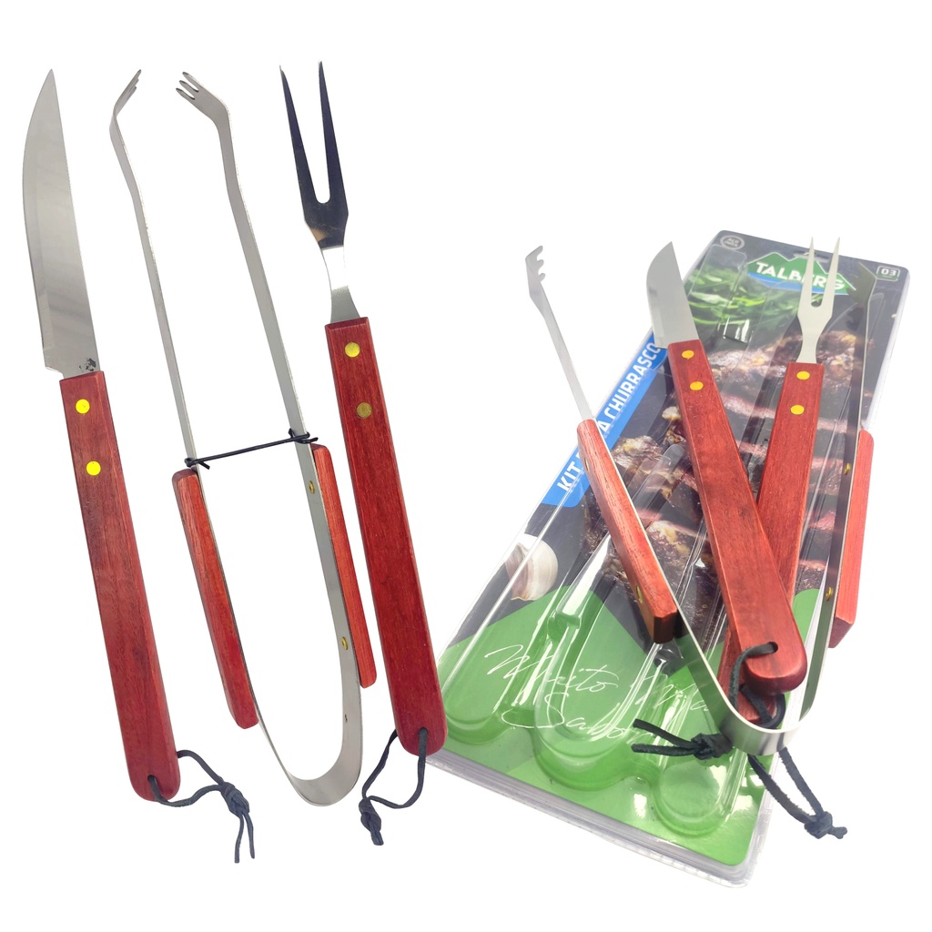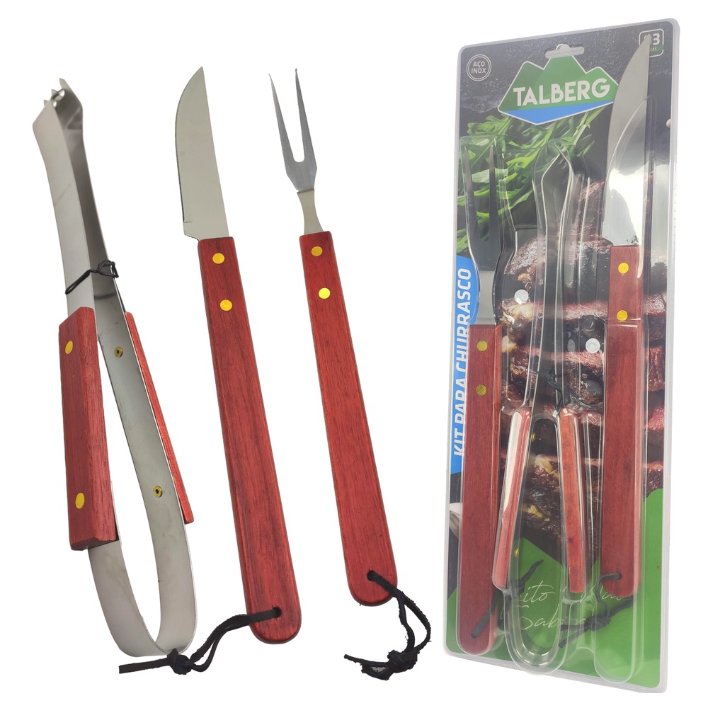Kit Churrasco 3 Peças Faca Garfo Chaira Aço Inox Cozinha