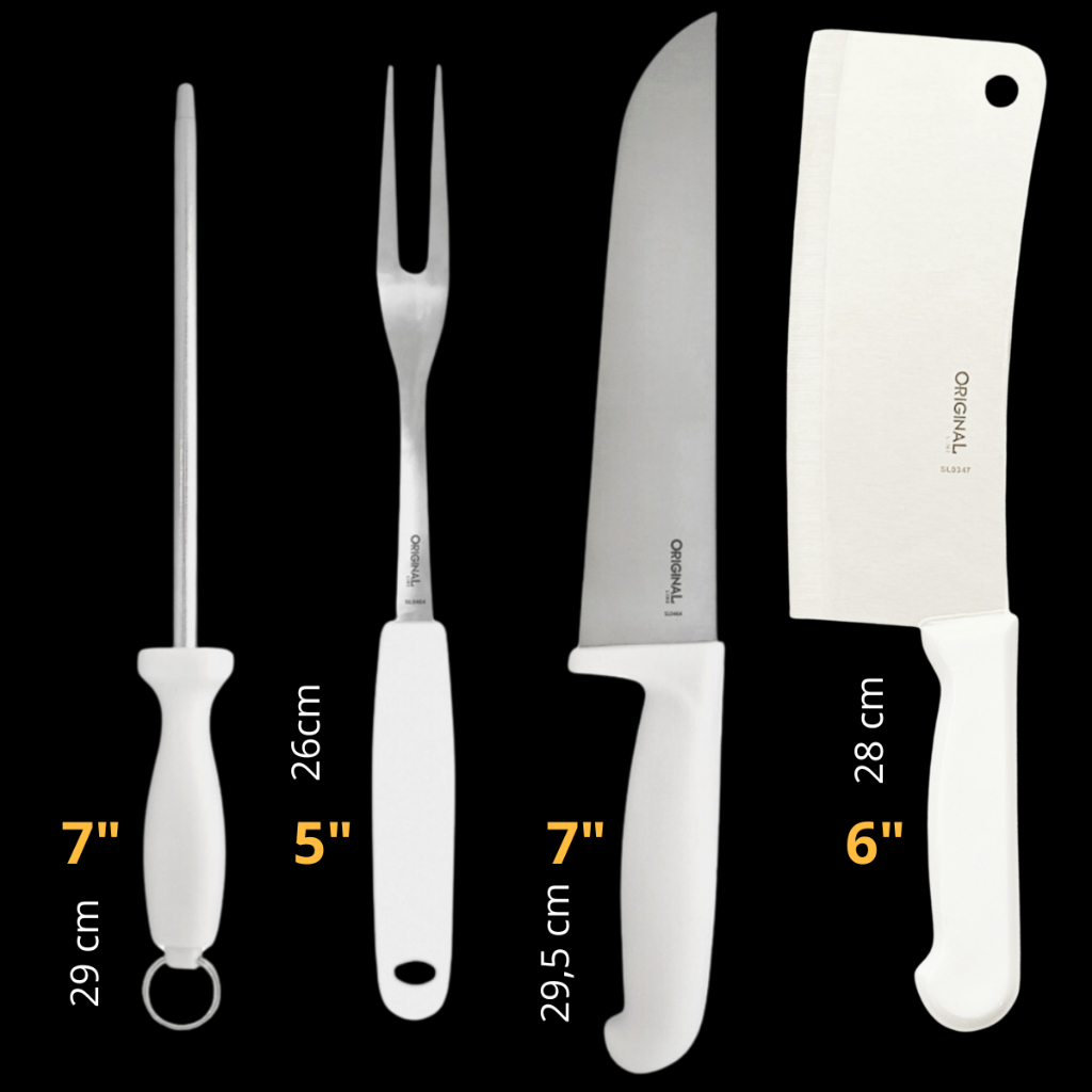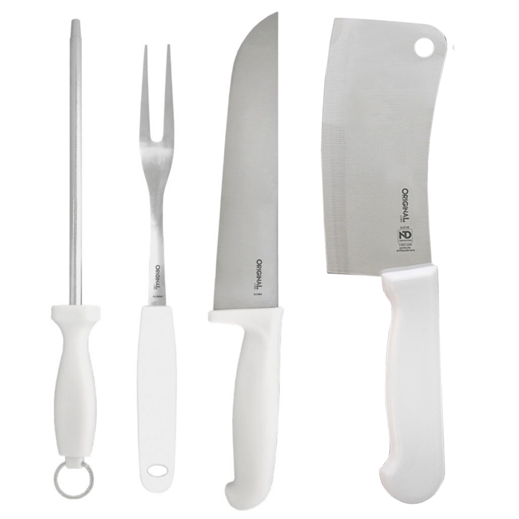 Kit Churrasco 1 Cutelo profissional + 1 Conjunto 3 Peças Faca Garfo Chaira ou 2 Peças Faca Garfo em Aço Inox