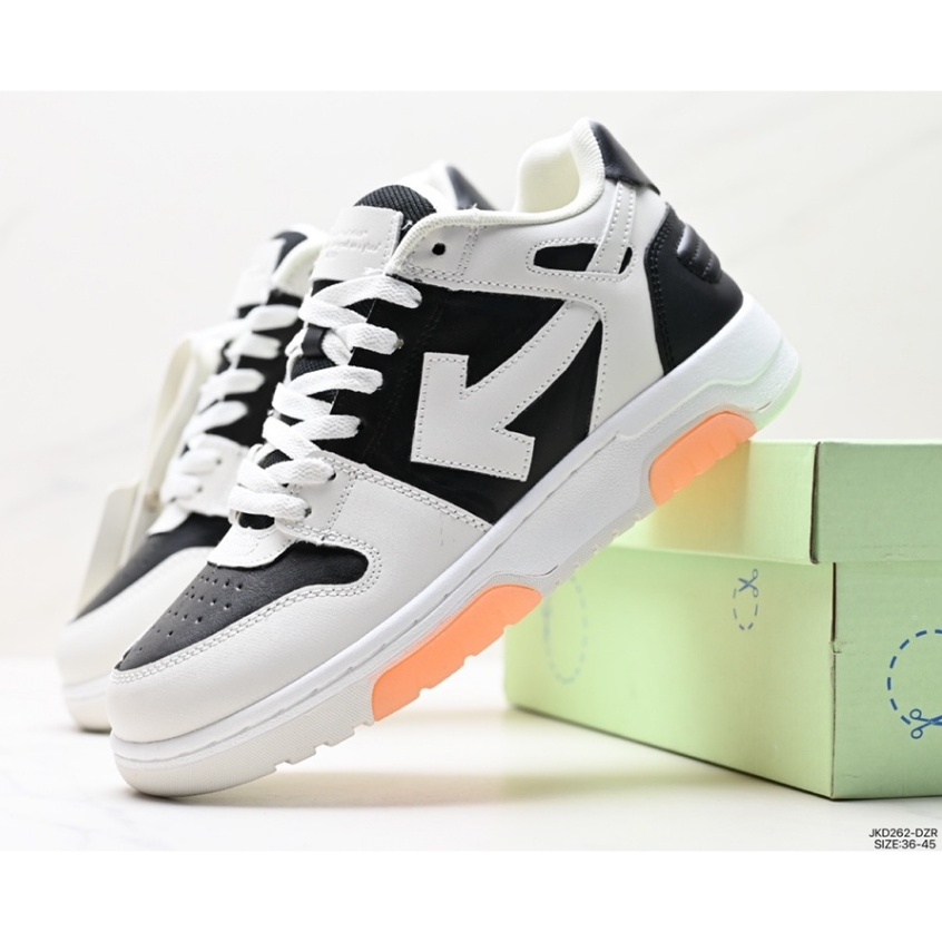 [Novo Produto] OFF-White Virgil Abloh Out of The Office Leather Low OW co-branded Arrow heavy Sneakers " OOO " Tênis Esportivo Casual Retrô Versátil