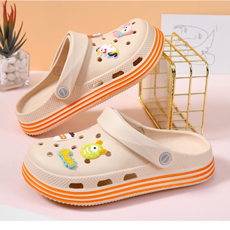 Ins Onda Fofo Buraco Sapatos Femininos De Verão Estudantes Vestir Sandálias De Praia Interior E Exterior
